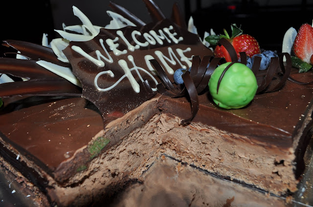 Welcome Home a rich Royal Chocolate Cake from my husband to me and baby to Brunei. Cake was ordered from The Empire Hotel, It was so rich in chocolate, who are chocolate lovers, i highly recommend this rich chocolate cake to all!! its so choco rich, cripsy on the bottom, mousse in the middle and rich choco on the top, its a great combination and it so soo super delicious!!! just love it.