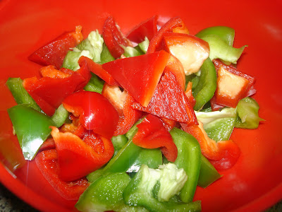 * cut fish fillet into a cube size, cut red/green capsicum, cut onion, chop garlic and put aside.