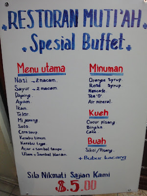 05.05.2011 @ Muti'ah Restaurant, Kiulap. Brunei. $5.00 buffet anyone?! so shocking cheap!! We never know $5.00 buffet exist in town, in fact there are 4 restaurants located in the same block that offers the same price for dinner, well except for Aiko Jpn Rest. buffet cost $6.00, a dollar more.
