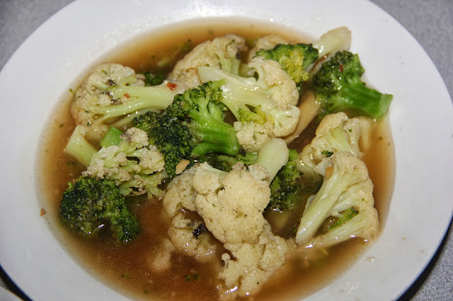 Broccoli & Cauliflower about a plate1 clove of Garlic, finely chopped