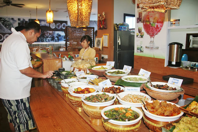 29.12.2013 - Bumbu Sunda Restaurant, Mega Mall Batam Centre. A beautiful sundanese restaurant you will be served a variety of specialties Sundanese food . You can enjoy foods such as vegetables and sour carp mortar. and so much food to order from yellow fried chicken, beef, fishes in the busket, variety of soya products, vegetables and not to forget 3 type of rice, white rice, brown rice and coconut rice.