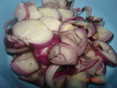 * heat oil in large pot/pan, sautee chopped onion, shallot & garlice for a minute add in spices fry till aromatic.