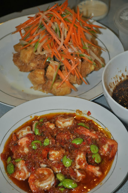*Prepare peanut sauce. Heat oil in a wok and fry lemongrass, galaga, ginger, chili spices & ketumbar powder until fragrant. Add in peanuts, water, tamarind juice, sugar, palm sugar and salt. Simmer until thick. set aside.