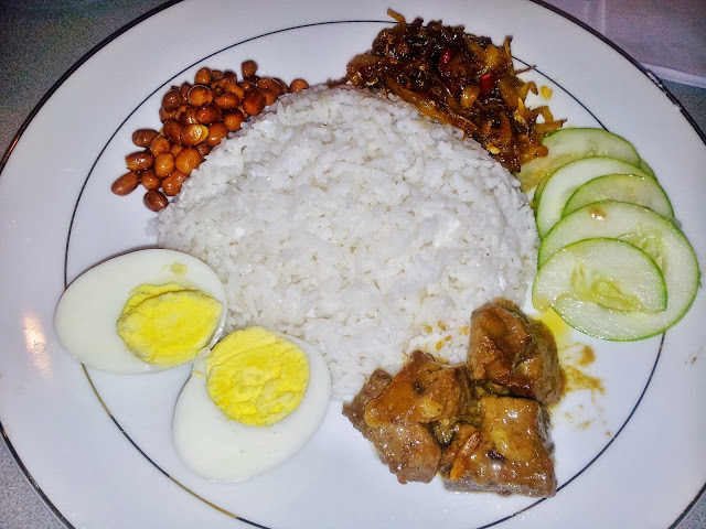 The reason why i don't use skewers for my so called satay, because i forgotten to buy them.. Sometimes, when we get so desperate for something, everything works my way. Without skewer I just pan fried the meat slowly with little oil on a normal non stick pan not on grill pan cos i don't have that either! LOL, no one knows that you cheats. Because the Taste and Texture is all the same and came out perfectly delicious!! I served with Peanut Sauce and Ketupat.
